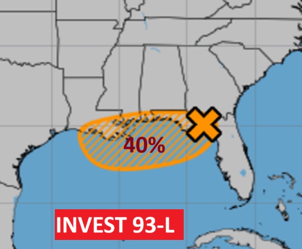 WEDNESDAY Update:  Tracking Invest 93-L  – Scattered Storms Will Increase