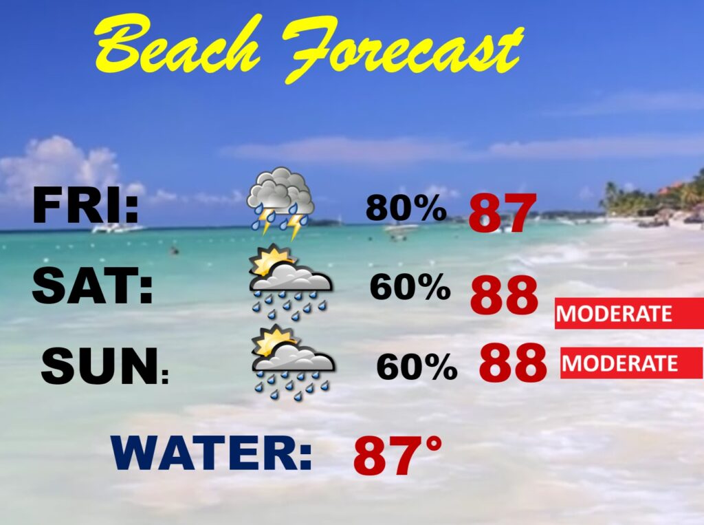 BEACH FORECAST:   Not ideal.  Be flexible.  Scattered showers and storms Friday through Sunday.