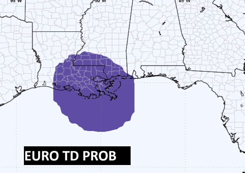 This the EURO Probability of Tropical Storm development.  It has gone downward in it’s probability of development.