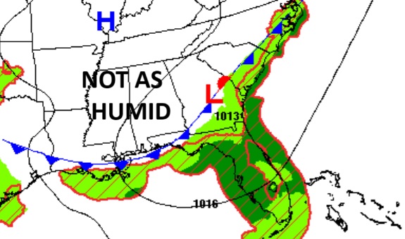Good morning! A southward moving frontal system will bring widely scattered storms today. Behind the front look for a welcome change just in the for the 4th of July weekend. . It’s generally a dry forecast Thursday through at least Saturday. Isolated PM storms return to the forecast Sunday and scattered storms Monday. Days will be getting hotter. Highs will be in the middle 90’s by Friday and Saturday. Meanwhile, NHC is monitoring that Area to Watch in the eastern Gulf into the Atlantic. Here’s my Video Forecast Discussion.