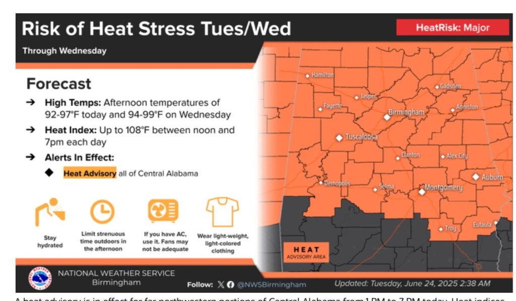 Good morning! That large Upper Heat Dome High continues dominate a huge part of the country. A Heat Advisory is in effect through Wednesday evening. The heat index will likely reach the 105+ danger range. Scattered PM storms are back in the forecast starting Wednesday through the end of the week. On Wednesday, some storms could be strong/severe. Big Heat can produce big storms. Here’s my brief forecast discussion.