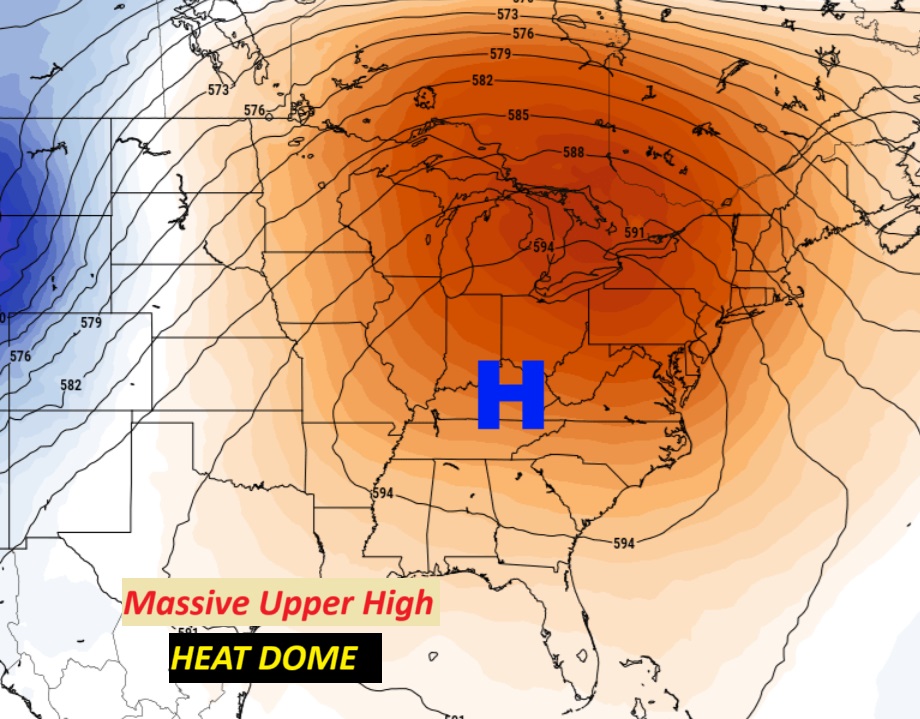 A massive Upper High Heat Dome dominates a huge part of the nation with Dangerous Heat.