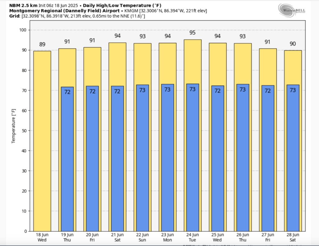 A building massive upper high will be responsible for fewer PM storms and Dangerous Heat Indices by the weekend.