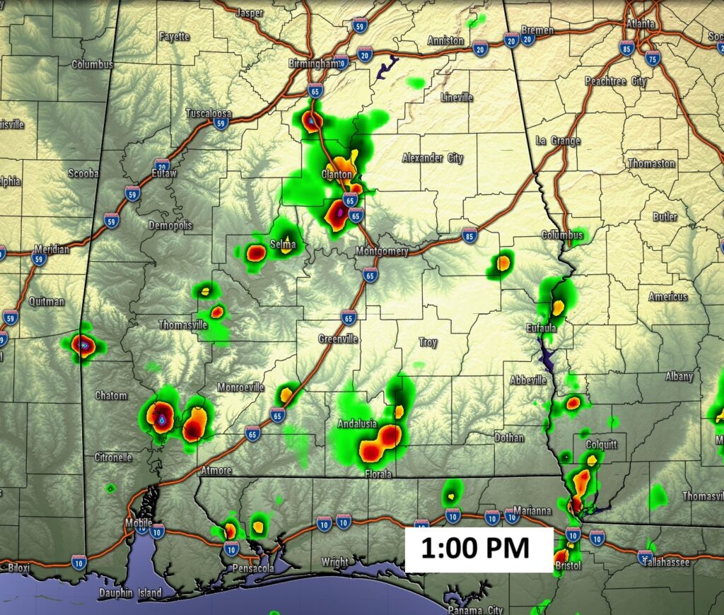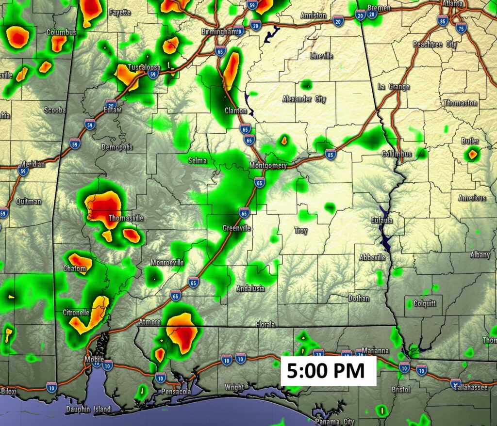 FUTURE RADAR: The trend will be for fewer storms on radar. You could still get a very heavy tropical downpour, but many towns will stay dry.