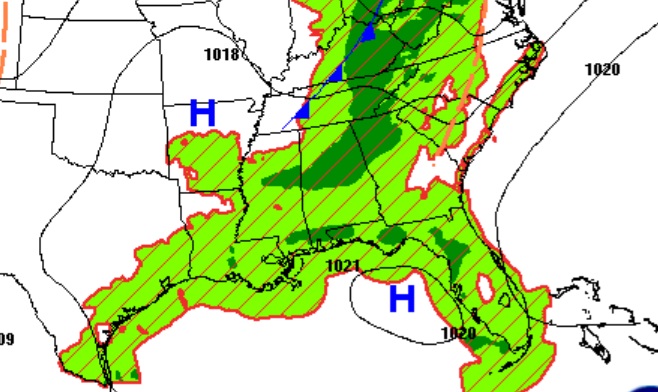 The influx of tropical moisture will lead to widespread showers and storms soaking the Southeastern US this weekend and beyond.