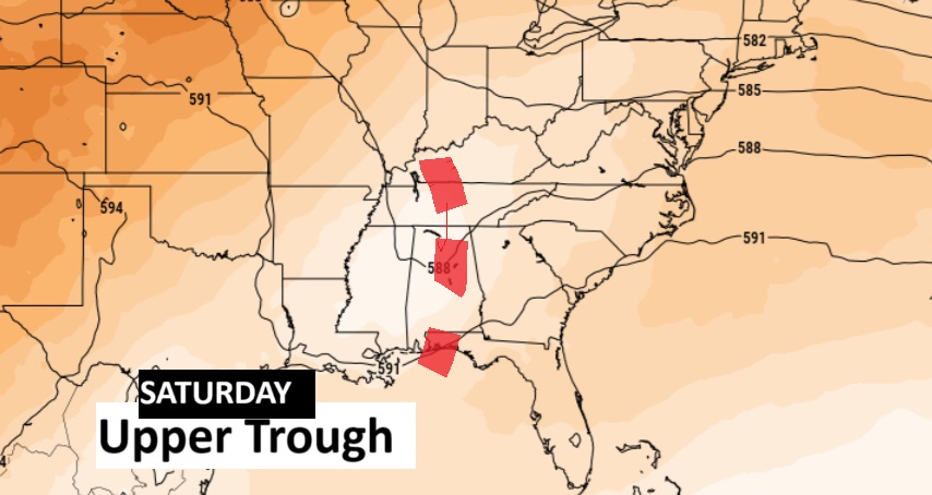Deep trough of low pressure will be the cabalist for numerous weekend showers and storms.