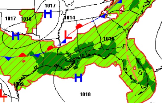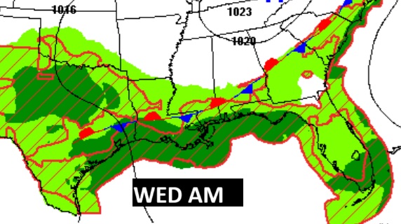 A frontal system parked in north Alabama this morning, will shift to south Alabama Wednesday AM.