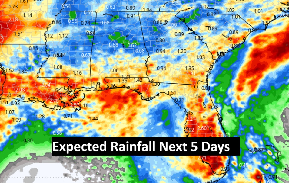 Expected rainfall will be heaviest across the southern half of the state next few days.