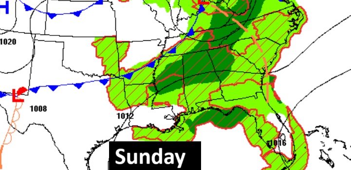 Good stuff from NWS Birmingham about the next 3 days. Saturday could be the biggest day. We’re heading into another active pattern with several rounds of systems coming through the region. With that, there’s at least a low to medium chance for severe storms each afternoon/evening for the next 3 days. For today – thunderstorms may initially be scattered, similar to a summertime pop-up thunderstorm coverage, so that’s why there’s no specific timing graphic associated with it. We could essentially see thunderstorm initiation around the same time for most of the area. For Saturday – we see more of a system move through so the timing could be broken down a bit better, but there’s still some uncertainty depending on when the storms develop upstream and where they eventually track. For Sunday – The areas may change depending on how Saturday’s system pans out and where the lingering boundary from Saturday’s round sets up for Sunday. #alwx