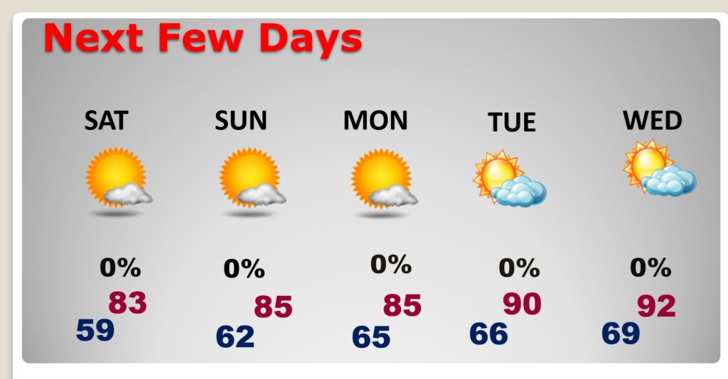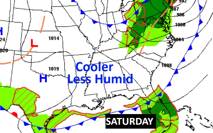 NEXT FEW DAYS: A Cold Front will sweep through the state by today. That will set the stage for nice, nearly perfect weather the weekend. Comfortable.