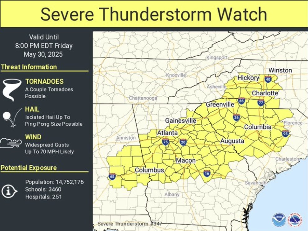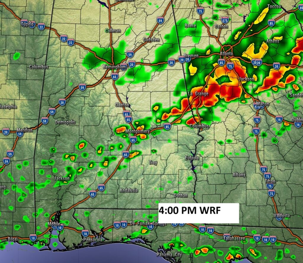 A Severe Thunderstorm Watch covers eastern Alabama, from Montgomery county eastward into Georgia until 7pm, but honestly, several counties will be cleared way before that.