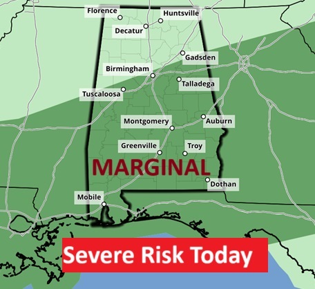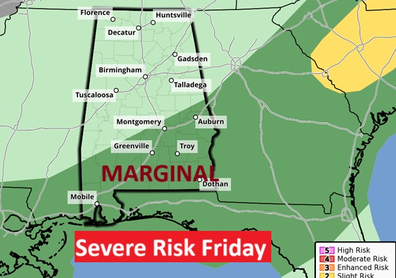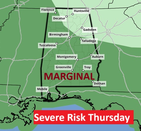The Storm Prediction Center will keep us in a Marginal Severe Risk each day through Friday.