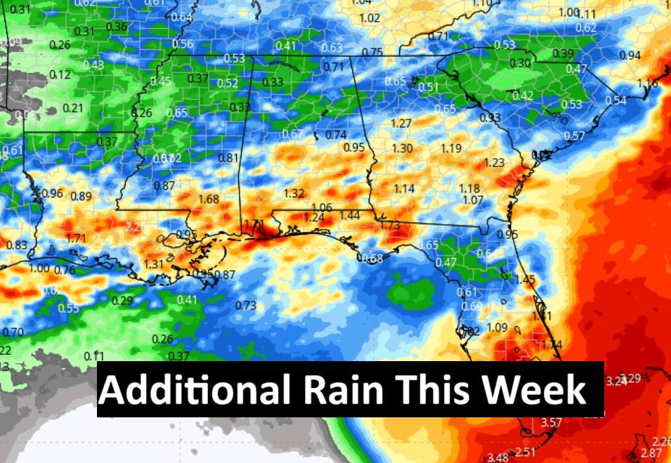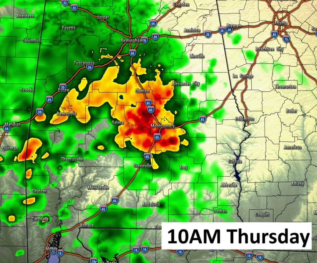 Good morning! It has been wet and stormy across Alabama and the Gulf South since last Saturday. The unsettled pattern will continue through Friday. Showers and storms will be most numerous in the afternoon and evening hours. Each day through Friday, some of the storms could be strong, possibly severe. A cool front will sweep through the state Friday. Behind the front, some really nice air will follow. It looks like a beautiful weekend with lower humidity and cooler air. Get ready for a nice change. Here’s my brief video forecast discussion.