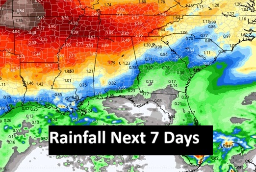 Here’s the rainfall potential map for the next 7 days. The wettest day could be on Memorial Day.