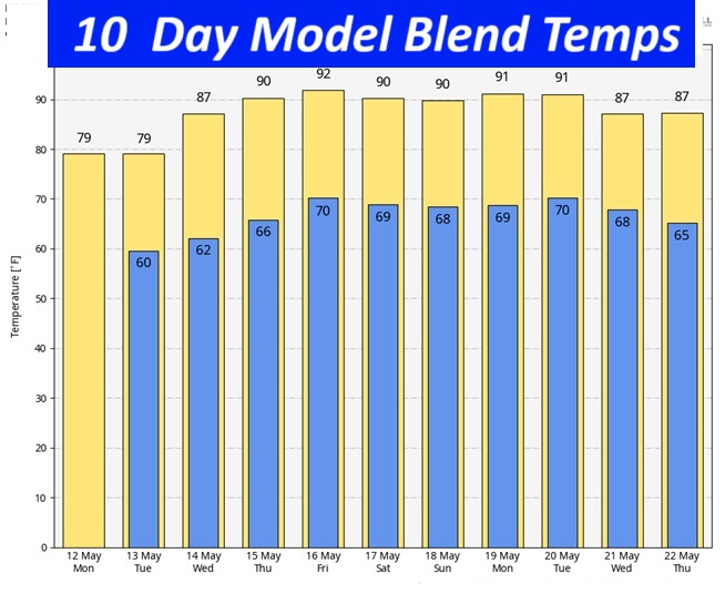 10 Day model blend temperature trend. Are you ready for the 90’s soon?