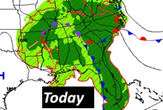 Good morning! Rainfall since Thursday night has been relentless. For instance, as of 3AM : Montgomery (MGM) has had 4.00. East Montgomery 5.19”. (1.44” since Midnight). You may have had more at your house. A Flood Advisory continues. Guess what? Rain and thunderstorms are likely today an there may even be some leftover showers and storms on Tuesday. Dry weather returns, finally Wednesday. It will turn hotter. We’ll be 90 or above on Thursday and Friday. Here’s my brief video forecast discussion.