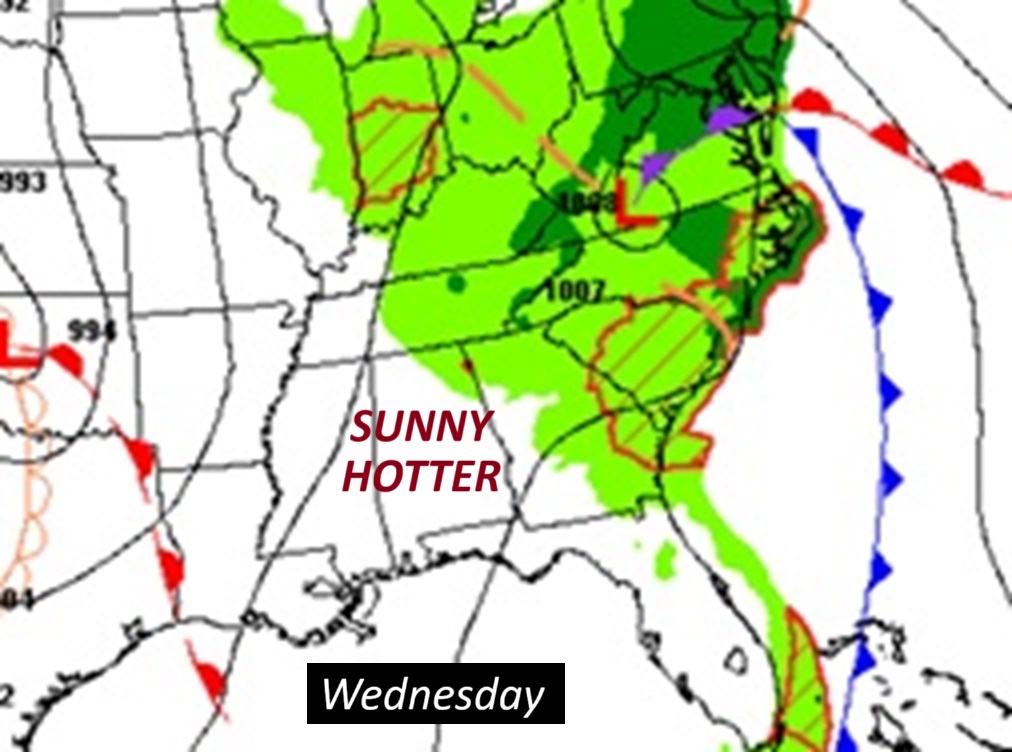 NEXT FEW DAYS: there may even be some leftover showers and storms on Tuesday. Dry weather returns, finally Wednesday. It will turn hotter. We’ll be 90 or above on Thursday and Friday.