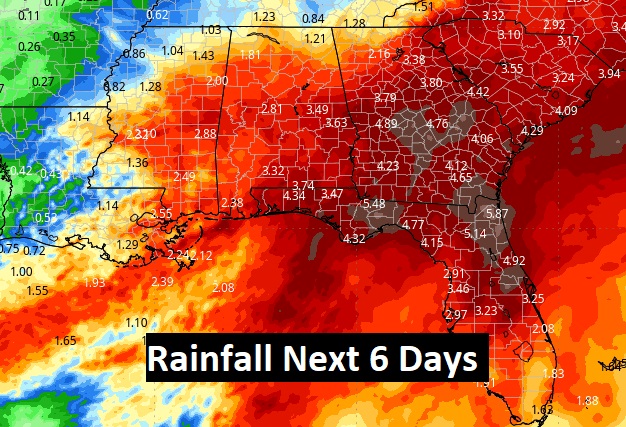 Here’s the expected rainfall over the next 6 days. There could be some rather impressive totals.