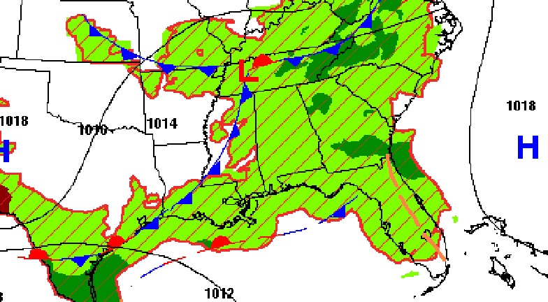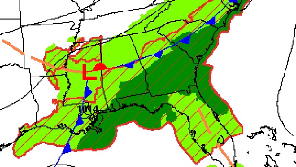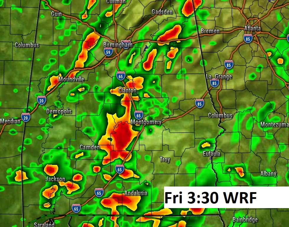 Good Morning! Alabama and the rest of the southeast US will be locked into a very active and occasionally wet pattern for the next several days as a series of storm systems parade across the South. This scenario could affect a lot of plans for the Mother’s Day weekend. Be flexible with your outdoor plans for here and the Gulf coast. There will be several dry hours. Much of today will be nice but there is a Marginal Severe risk this evening across the area. See below. Highs will be held down to the mid 70’s over the weekend due to clouds and showers. Here’s my brief forecast discussion.