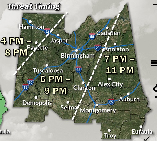 Here’s the Timing Map for the severe weather risk this evening.