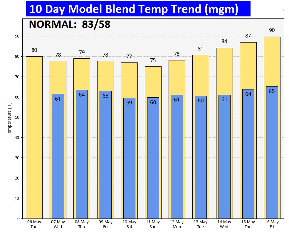 Here’s the 10 day model blend temperature trend.
