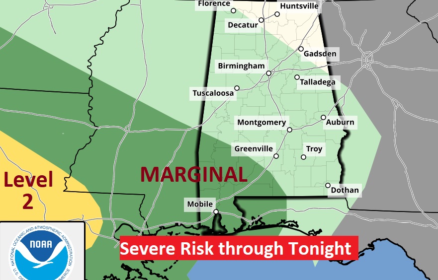 TODAY: Should be a great day. Partial sunny, low humidity and comfortable. High 82. Light wind. Most cloudy tonight. Dry through the evening hours. Risk of scattered showers and storms begins in the overnight hours. Low 61.