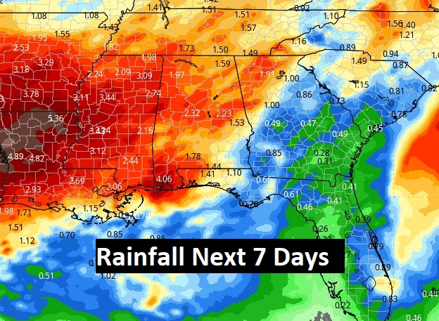 Here’s the expected rainfall through the next 7 days. The totals increase, the farther northwest you go in the state. We need the rain.