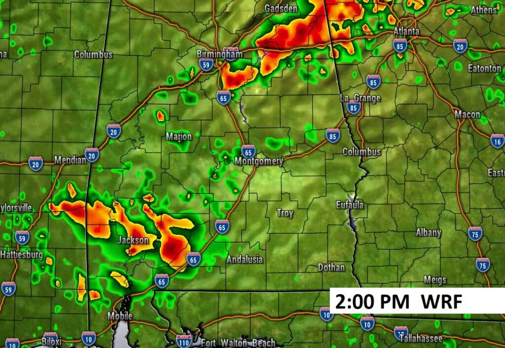 Future Radar: Scattered showers and storms will populate the radar this afternoon and become more numerous tonight, including the overnight hours.