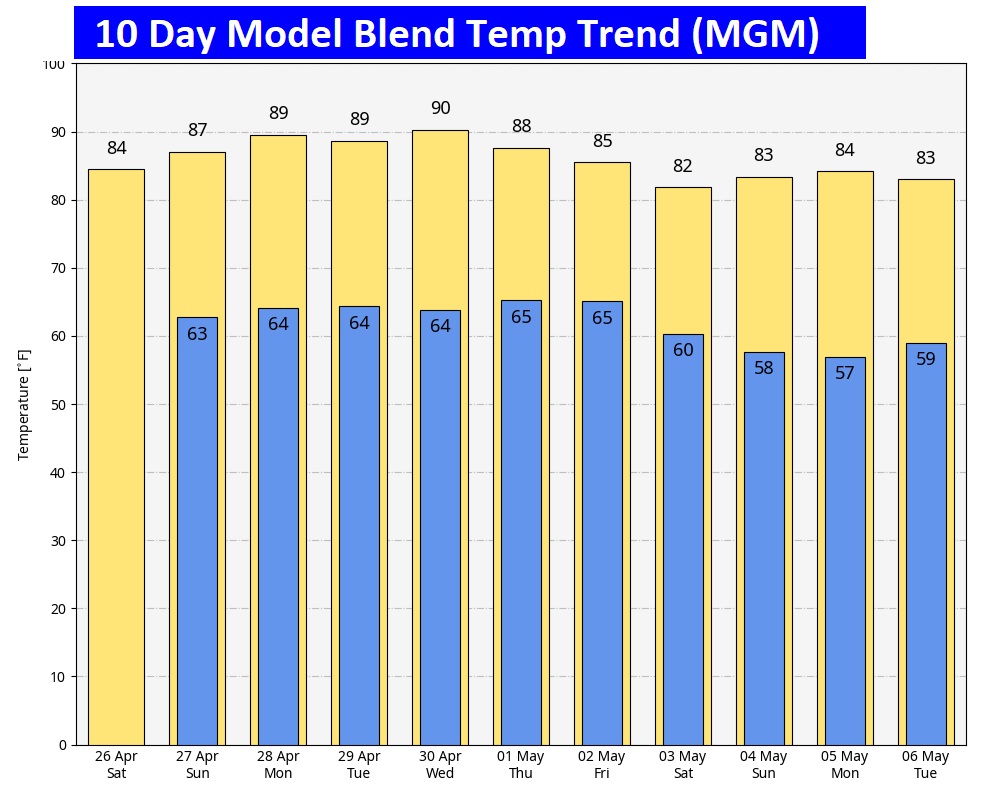 Here’s the 10 day model blend temperature trend.