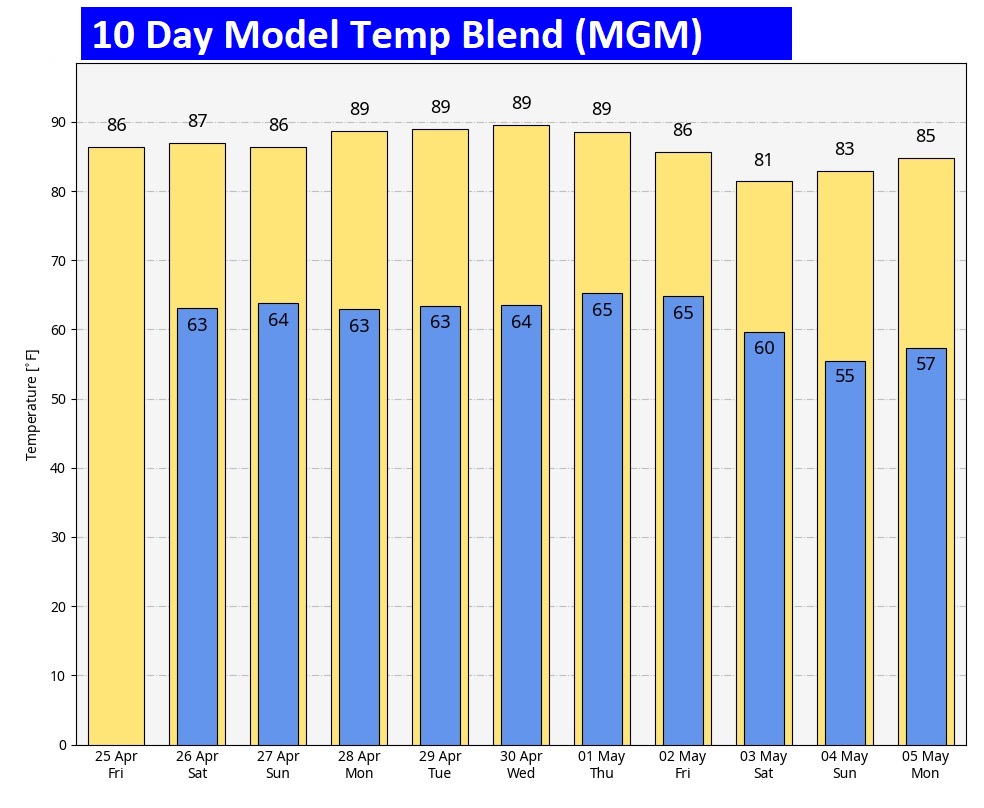 Here’s the 10 day model blend temperature trend.