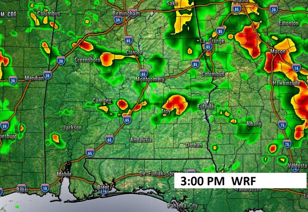 Good Morning! Once again yesterday, random showers and a few thunderstorms dotted the radar. It was feast or famine. A few towns got lucky, but many towns stayed dry. The Montgomery airport recorded a Trace of rain. Still, though, there has not been any measurable rain in 13 days. Today through Saturday will be similar. Spotty random showers and a few thundershowers, rather widely scattered, most prominent in the afternoon and evening hours. Meanwhile, it continues quite warm with highs well into the mid to upper 80’s with lows in the 60’s. We may flirt with 90 over the weekend. It’s still April, but it feels more and more like a summer forecast. Here’s my brief video forecast discussion.