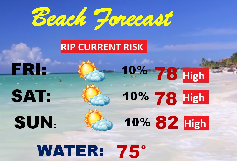 BEACH OUTLOOK: It’s a great weekend forecast down at the beaches, from Gulf Shores to Panama City. Comfortable and nice. Unfortunately a hh rip current risk, especially from Destin to about Mexico Beach.