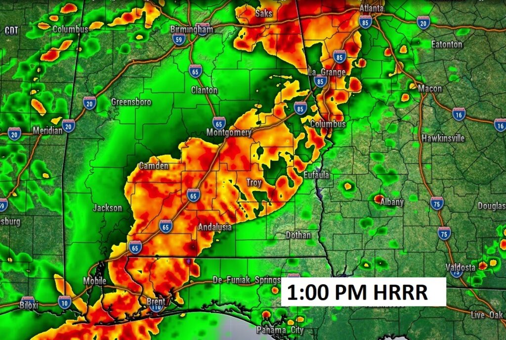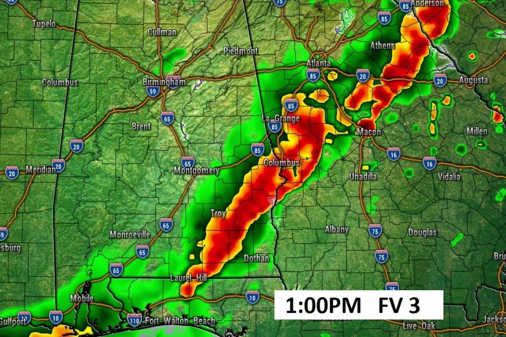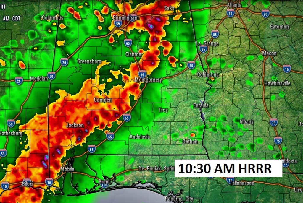 By early afternoon, the strong line/band of storms will have reached southeast Alabama, and then exiting our state. The rest of this week looks storm-free and progressively warmer, as the month of April begins.  Expect upper 80’s Wednesday and Thursday and maybe the first 90° of 2025 on Friday.  Here’s my video forecast discussion.