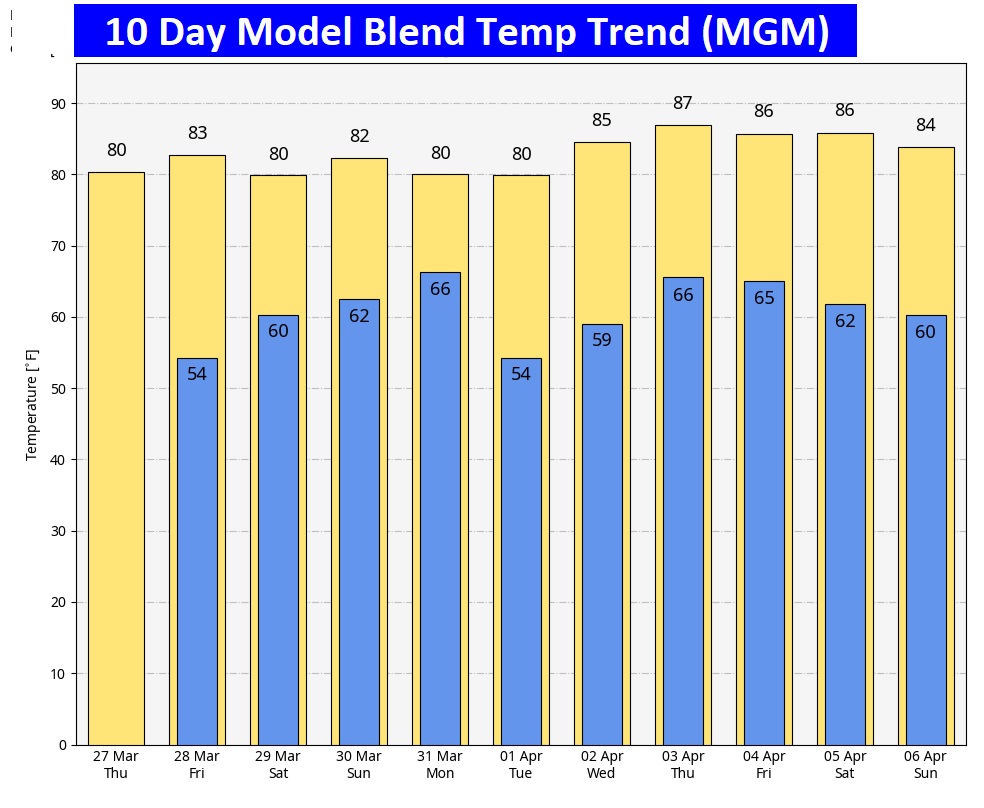 Here’s the 10 day model blend temperature trend. The warmth will continue.