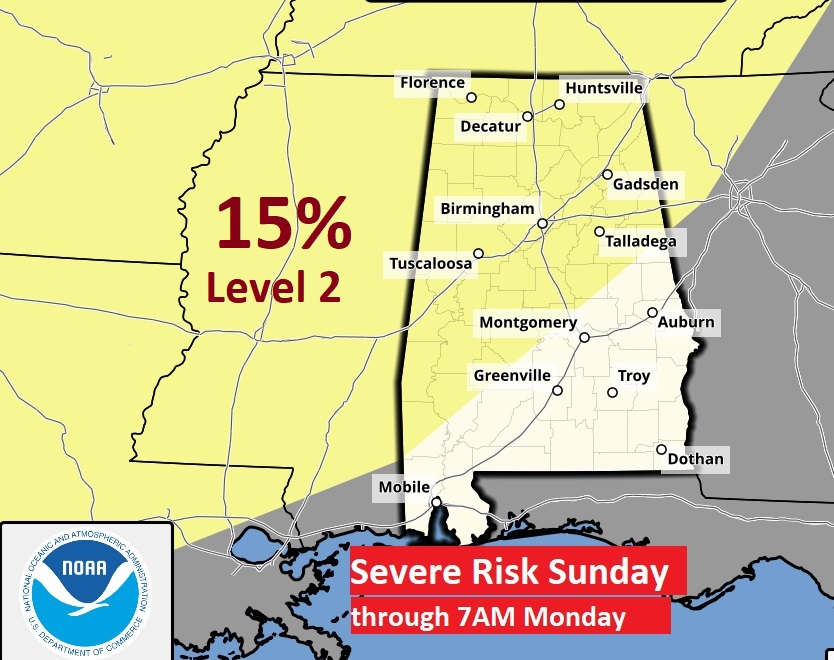 Good Morning! Our Storm-free pattern continues for a little while longer, today through Friday. Expected highs today through Saturday at or above 80. Mid 80’s are a good bet Sunday. An unsettled pattern will begin this weekend and continue at least through Monday, as a series of storm systems approach. Part one will bring a round of showers and storms on Saturday and Saturday evening. More scattered thunderstorms Sunday, with an increasing threat Sunday night. The main event is becoming more and more likely Monday, perhaps starting pre-dawn, and through the morning and mid-day hours, into early afternoon. The Storm Prediction Center is still highlighting a Level 2 (15%) Severe Risk. All modes of severe weather are on the table, including tornadoes. The EURO and GFS seem to be in better agreement, including on the timeline. Here’s my brief video forecast discussion.