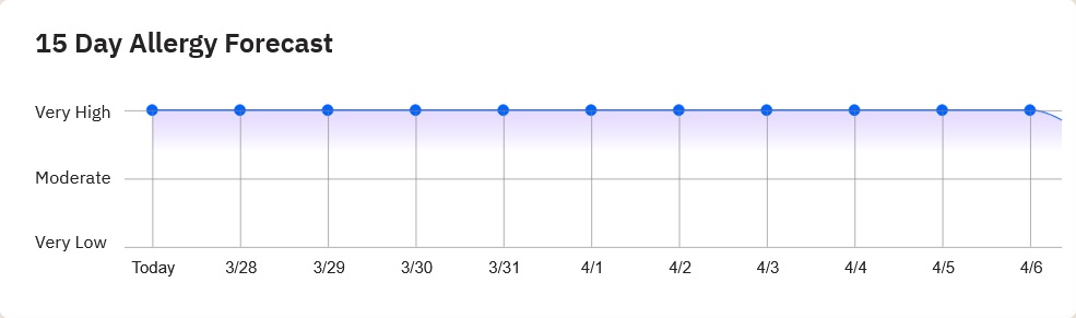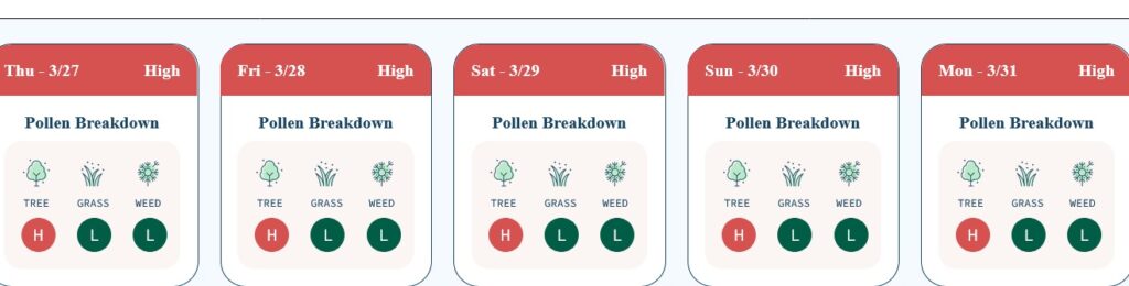 POLLEN: Looks like pollen will continue to be a major issue for the next several days.