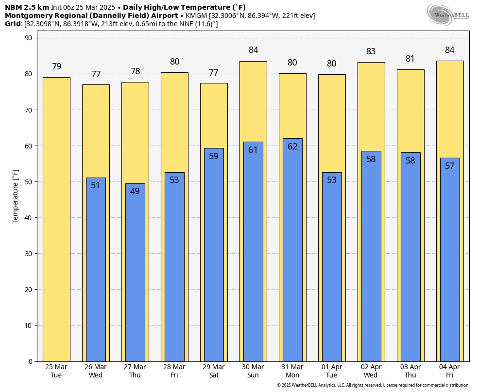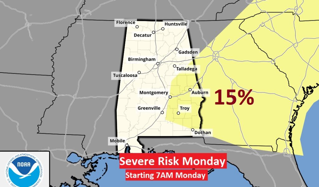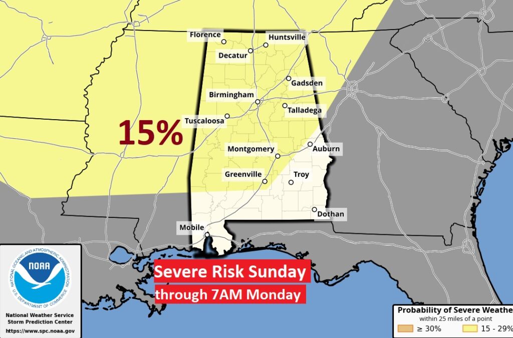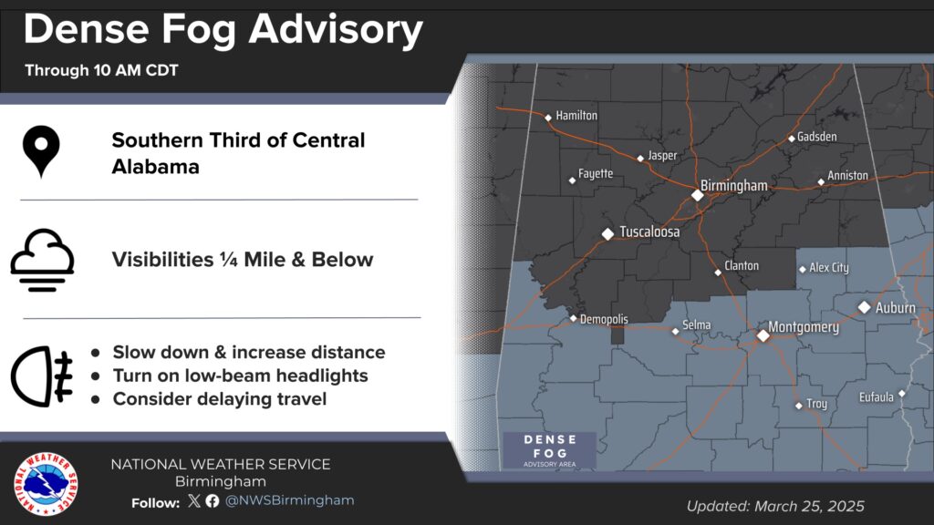 Good Morning! Dense Fog will be a problem across much of central and south Alabama through 9AM. Otherwise, expect vast improvement as this day unfolds. It will be comfortably warm for the next few days with highs in the upper 70’s and lower 80’s. We are expecting dry, storm-free weather through Friday. This weekend we have our eyes on a two-part storm system Saturday through perhaps Monday morning. The Storm Prediction Center has the whole region in a level 2 Severe Risk for Sunday night into early Monday. The exact timing of the main threat is yet to be determined. Here’s my brief video forecast discussion.
