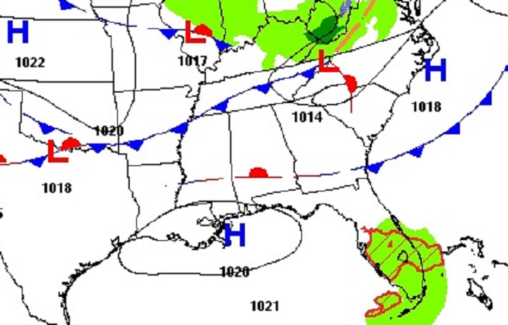 A weakening front is stretched across south Alabama. It’ll have little or no impact on today’s weather. Skies will become mostly sunny by mid-day and afternoon.