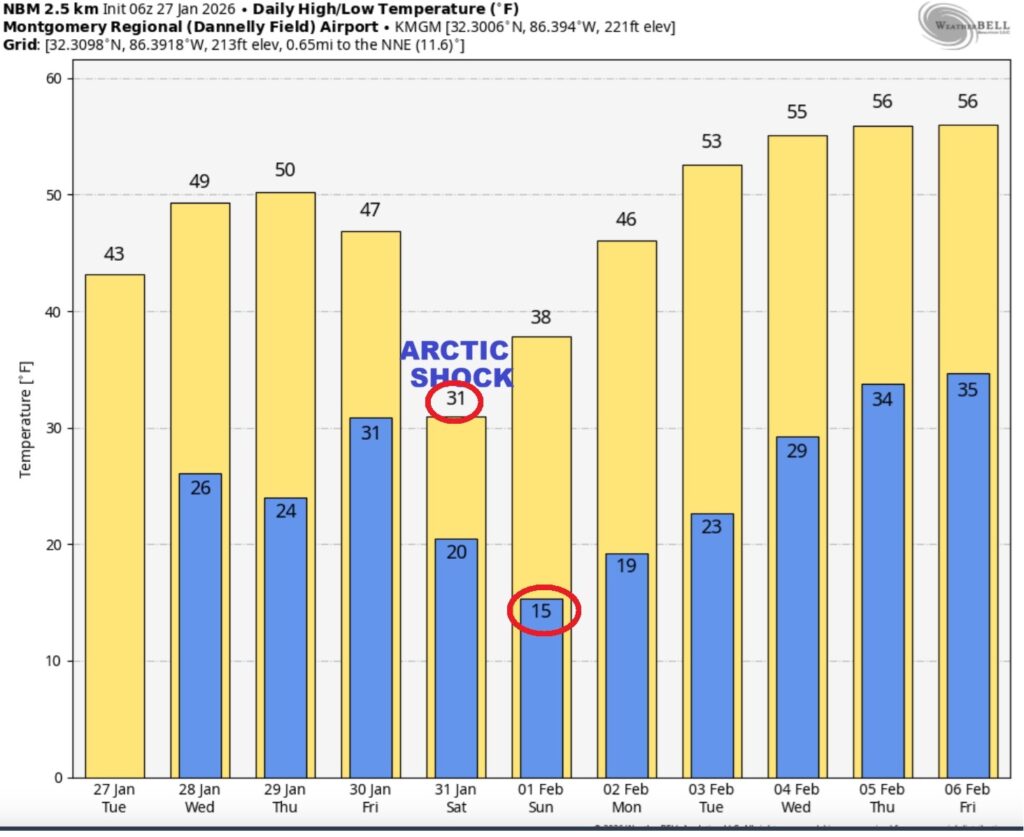 AND, listen to this.  Another extreme Arctic surge arriving by Saturday will likely be even colder. Saturday’s high may struggle to reach freezing.  Maybe coldest in years.