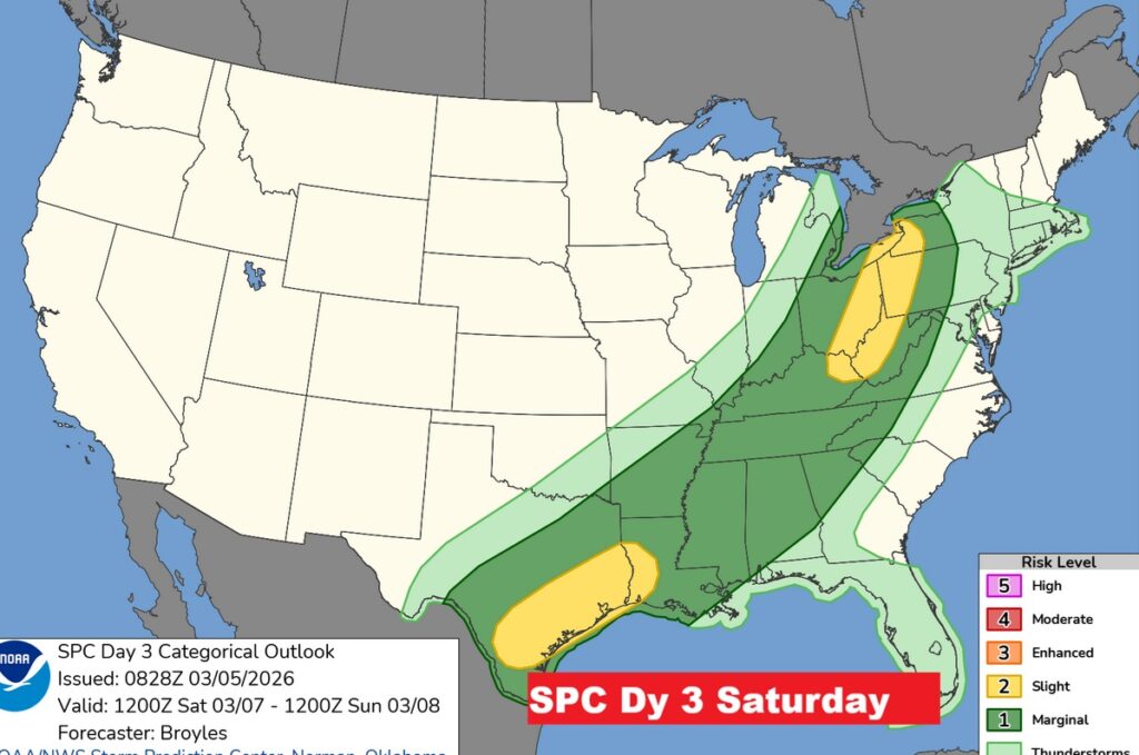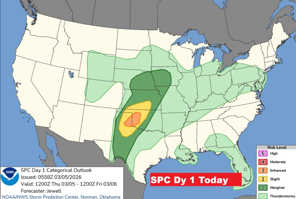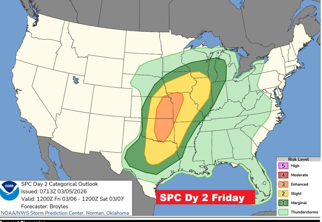 FOR US: The Level 1 Severe Threat continues until 7AM CDT Sunday AM. I would not be surprised if the threat is extended to Day 4 Sunday.