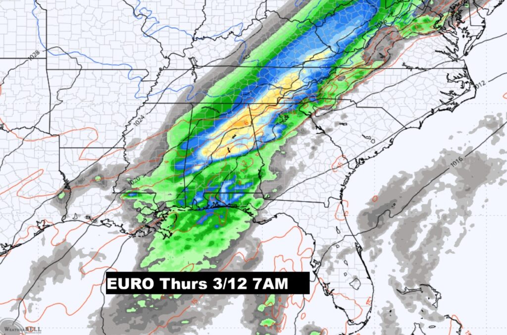 I’m also worried about a mid-week storm system Wed. Night 3/11 into Thursday 3/12. I’m pretty sure this will be a Severe Threat.