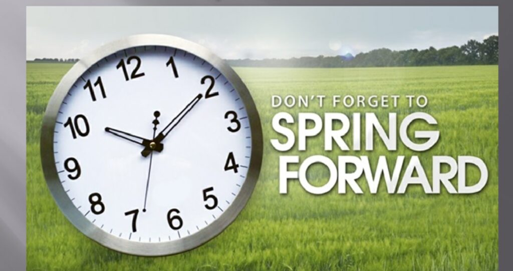 SPRING FORWARD THIS WEEKEND: Sunday night at 2:00AM we go back to Daylight Time. One less hour of sleep Saturday night.