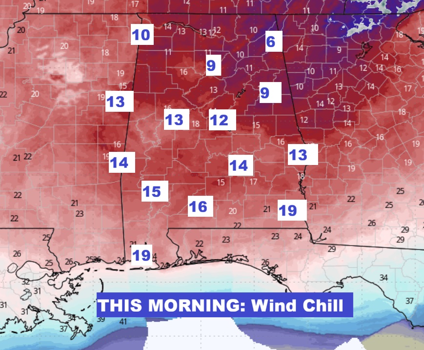 MORNING WIND CHILL: Dress in layers. It looks like a very uncomfortable Wind Chill Morning and a very unpleasant day ahead temperature-wise with the breeze.