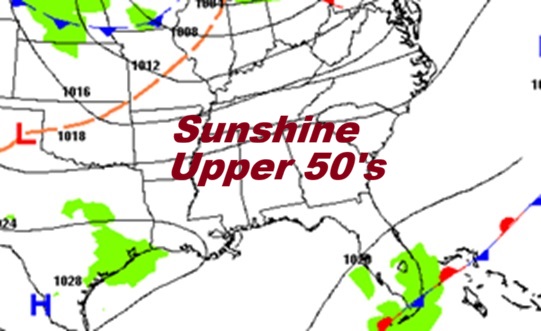 TODAY: Sunny and not quite as cold. High 57. Light west wind. Increasing clouds. Low 37.