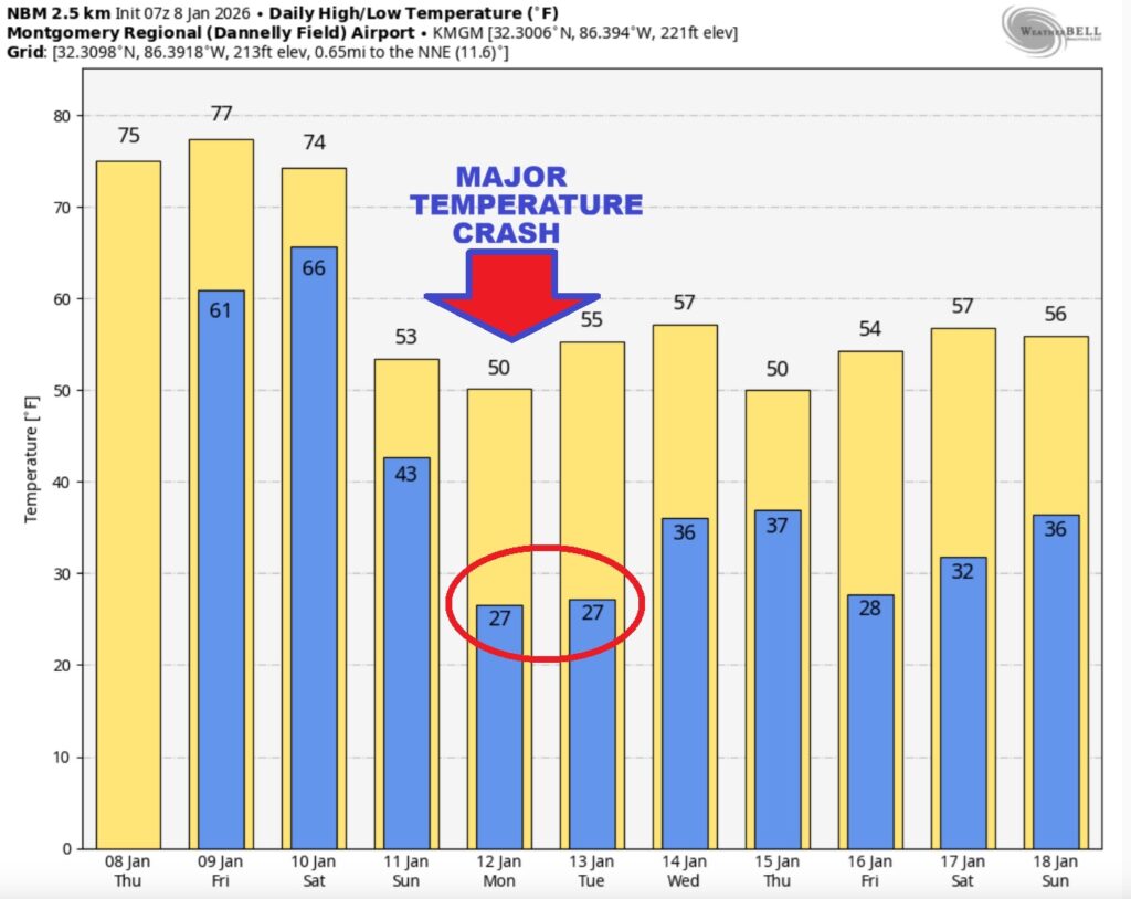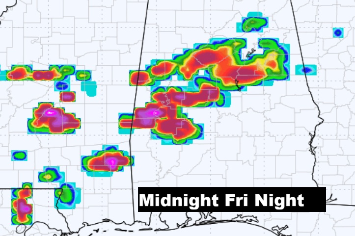 Here’s the expected rainfall next 7 days. Excessive rainfall totals could cause flooding across the northwest half of Alabama.