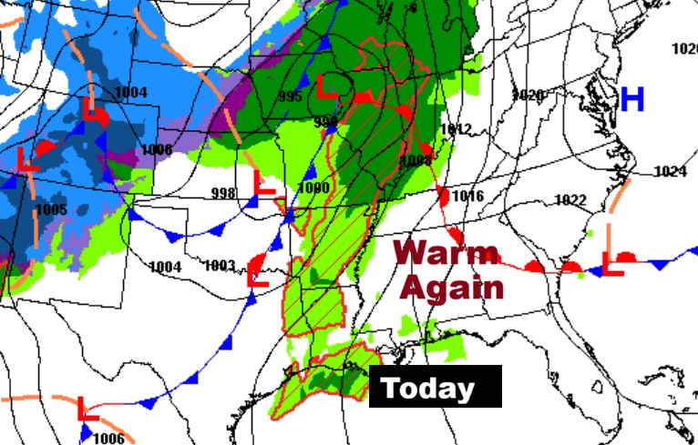 Good Morning! Dense Fog Advisory till 9AM. After patchy dense fog again this morning, get ready for another very mild day. Today’s high should reach the middle 70’s. (Normal 59/36) We’ll be in the 70’s through Friday. Our next significant weather maker will bring rain and thunderstorms by Friday night into Saturday. Some storms could be strong, possibly severe Friday night and Saturday. There is a Marginal Severe Risk for most of us. Damaging wind gusts are the main threat. A few tornadoes are not out of the question. Sharply Colder Arctic Air follows starting Sunday. We’ll be in the 20’s Sunday night. Monday we may fail to make it to 50 degrees. Here’s my brief video forecast discussion.