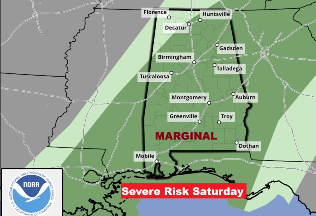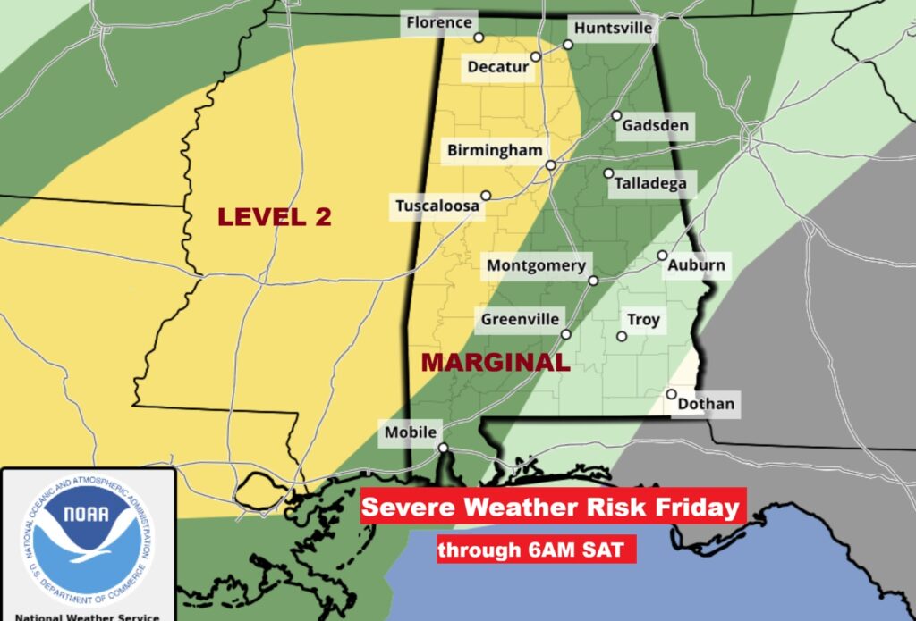There is a Marginal Severe Risk for most of us. Damaging wind gusts are the main threat. A few tornadoes are not out of the question.