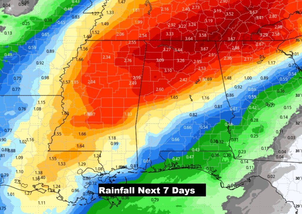 Here’s the expected rainfall next 7 days.