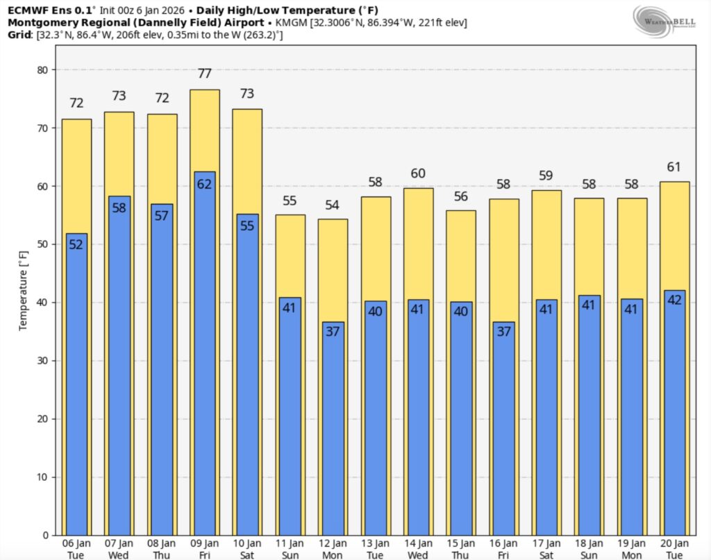 Here’s a peak at the EURO 16 day Ensemble outlook.  Winter air will return.