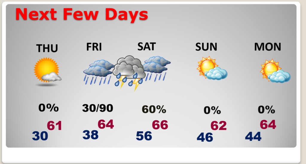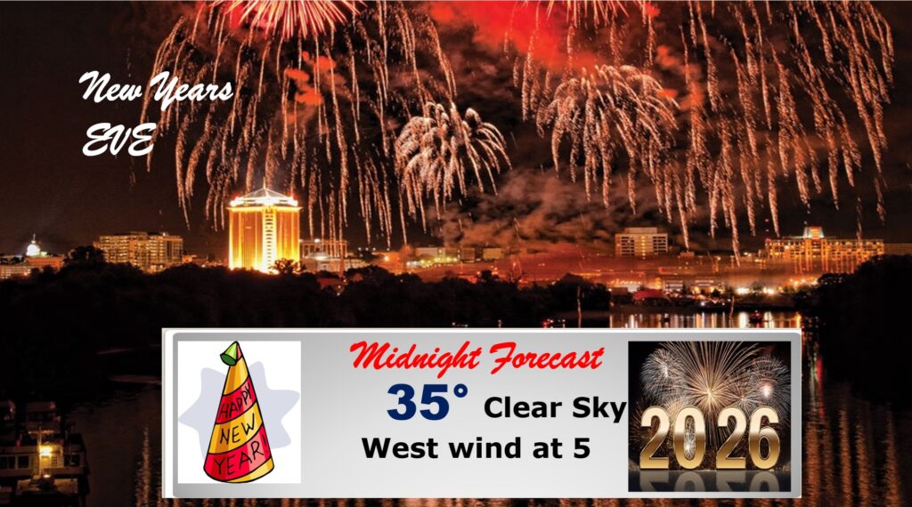 Good Morning! This final morning of 2025 will be quite cold, in the lower 20’s. But, wind chill is not much of a factor. Expect sunshine and lower 50’s today. (Normal 60/37) We’ll be in the mid 30’s at Midnight as the New Year begins, and near 30 by Dawn. On New Years Day we may tease 60 degrees. Expect a late week warm-up. Middle 60’s by Friday & Saturday. Scattered showers and thunderstorms are expected late Friday and especially Friday night and into Saturday. Some stronger storms are not out of the question. Here’s my brief video forecast Discussion.